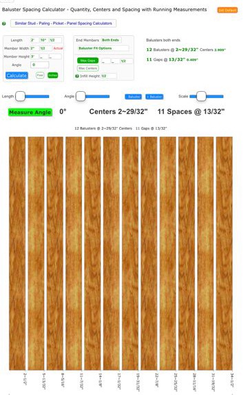 To calculate the number of railing balusters, I use the Blocklayer - Baluster Spacing calculator:
