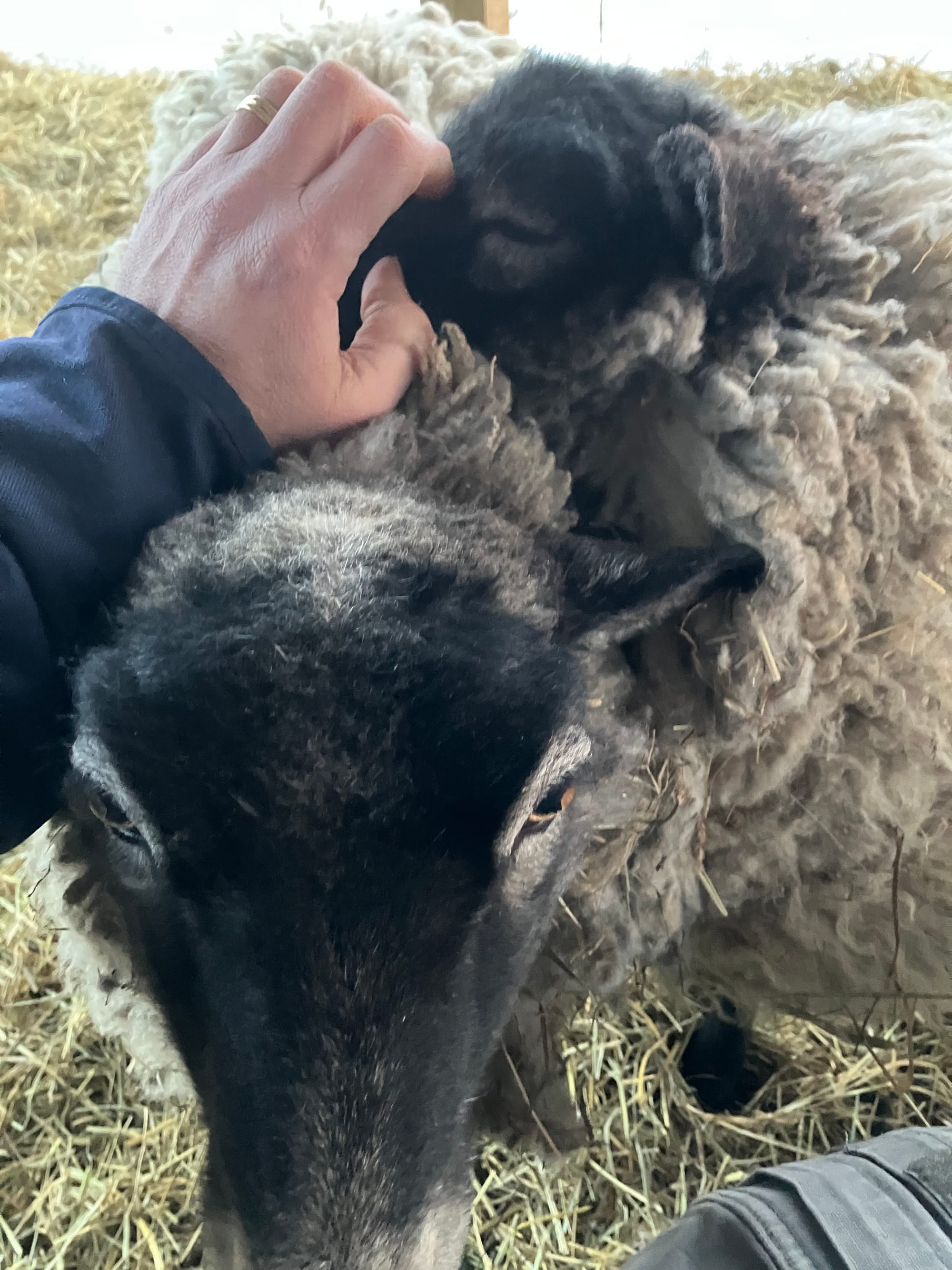 Tonight I took two of my grandchildren out to the barn for some sheep time. The sheep are getting picky with the grass hay — only eating the leafy parts and not the stems. So they baa like they’re hungry but they have half a feeder full of leftovers. Needless to say, we dropped them a fresh bale.