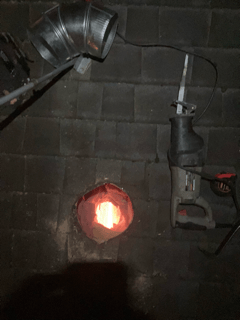 But when I cut a hole for the pipe to go through the ceiling, I found an old exhaust vent in the insulation. Problem was this exhaust ducting was plastic and was running a long distance to exit the roof. Both are a bad.