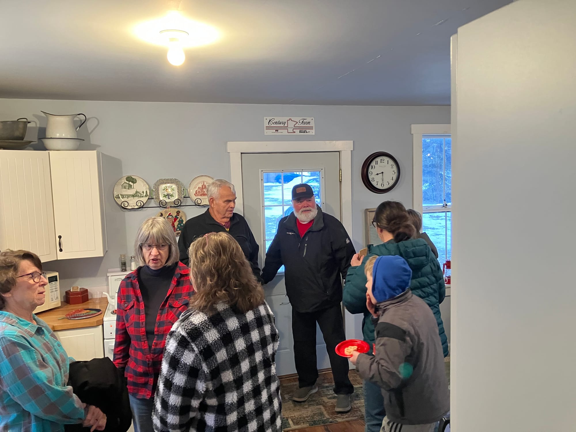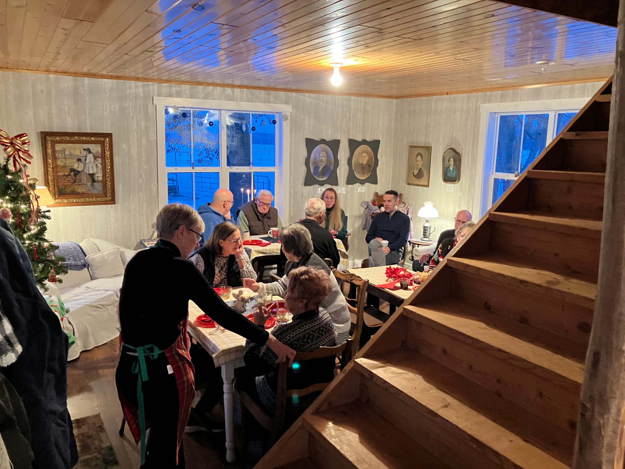 Our cozy Christmas snacks and sunrise get-together with the saints at North Isanti Baptist Church started later than normal. Organizers Rob and Janis Eastlund hosted the event in their “summer kitchen.” Fruit soup, herring, thin bread, bars, cookies and coffee were plentiful.